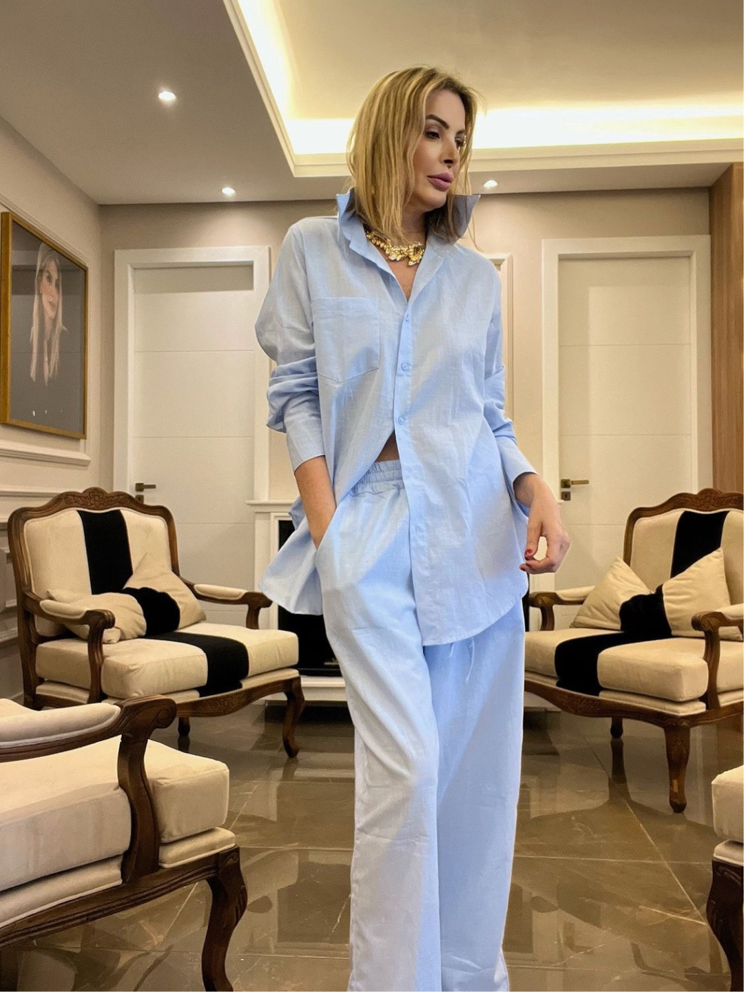 Cores: Azul, Branco e Manteiga